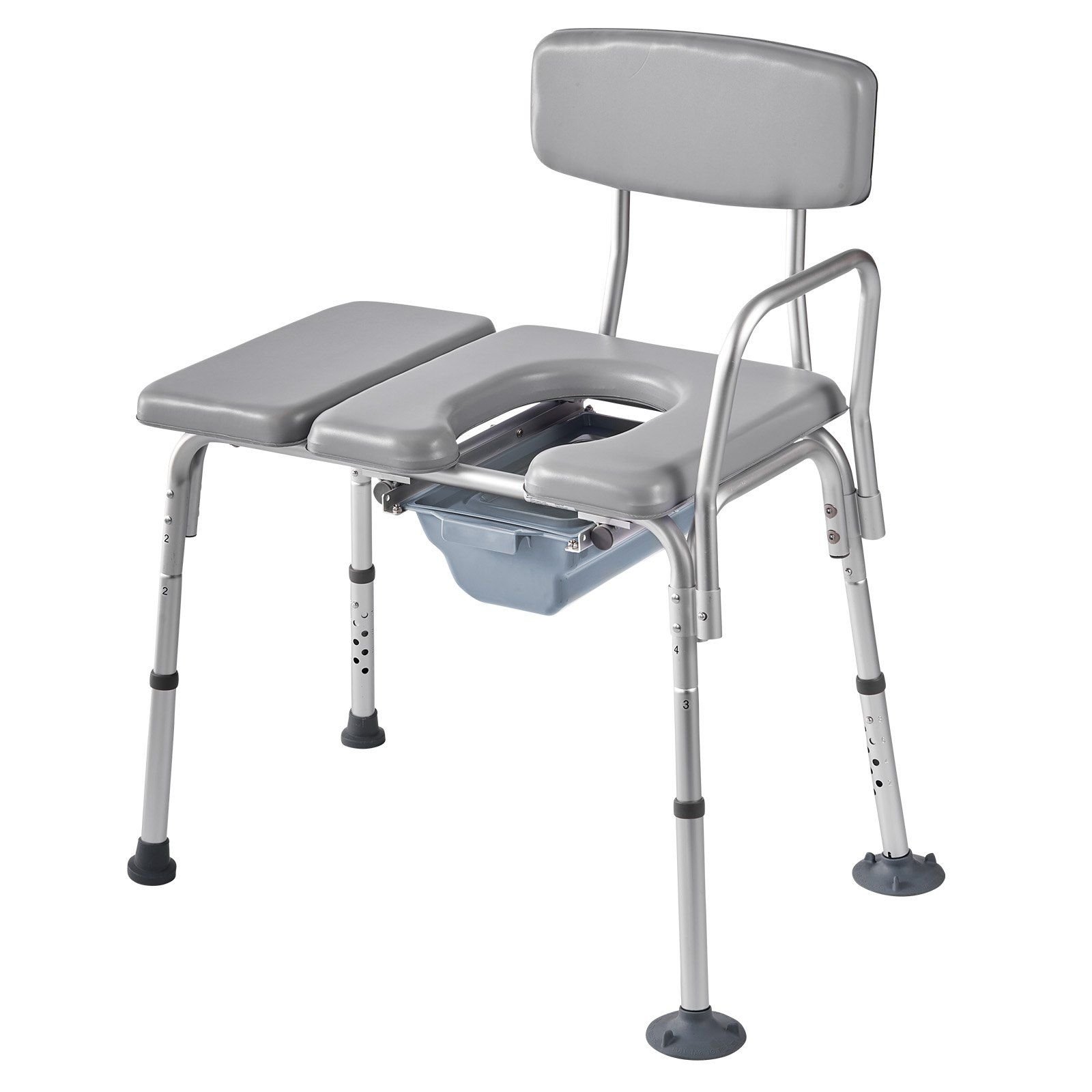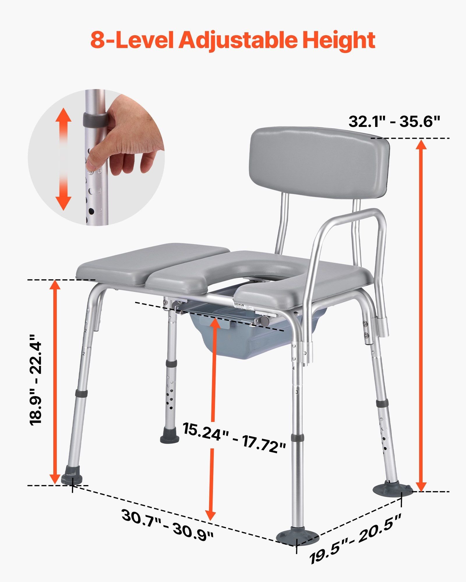 2.4-in-1 Toilet Commode: This chair combines a bedside commode and tub transfer bench in one. Built with a reinforced aluminum alloy frame, it supports up to 500 lbs. Use it as a bedside commode, tub transfer bench, raised toilet seat, or shower chair