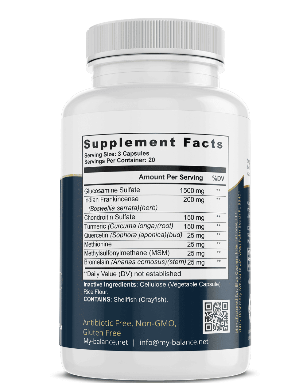 My Balance Joint Support is crafted with a blend of natural ingredients aimed at providing joint support and encouraging flexibility. This specialized formula combines well-researched compounds, including glucosamine sulfate, chondroitin, MSM, and Boswellia serrata, designed to support joint function and comfort, especially for individuals seeking enhanced mobility in their daily activities.