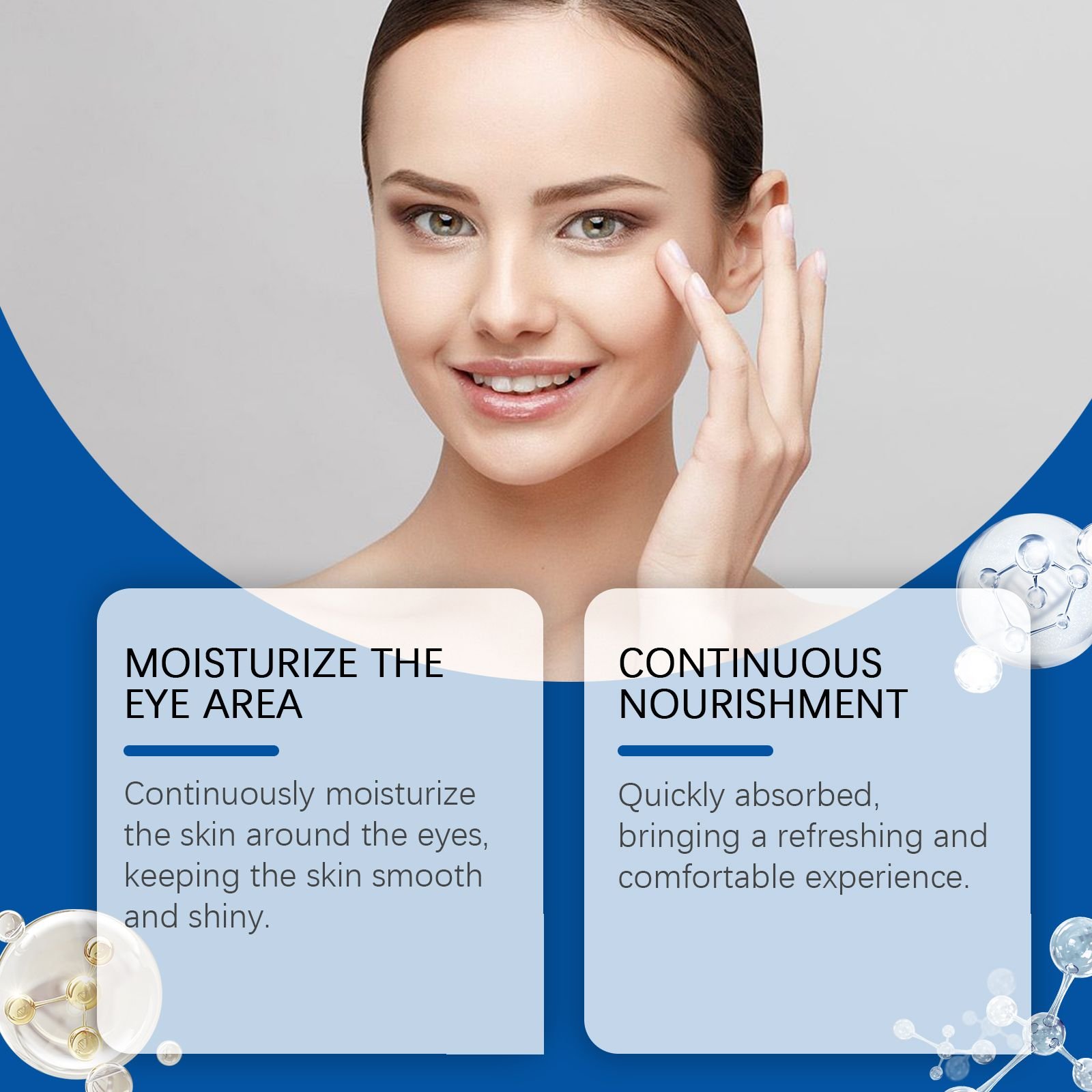 Our eye firming serum contains mint leaves, lemon extract, vitamin E(tocopherol). It continuously moisturizes the skin around the eyes and keeps the skin smooth and shiny. Absorb quickly for a refreshing and comfortable experience. Its application is simple: apply to eyes and face and massage until absorbed. Nourish continuously, leaving a bright glow around the eyes. Easy skin care, keep eye skin thy.